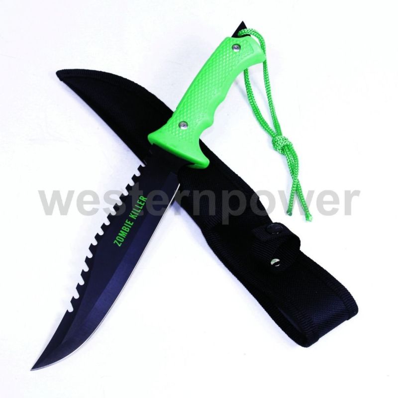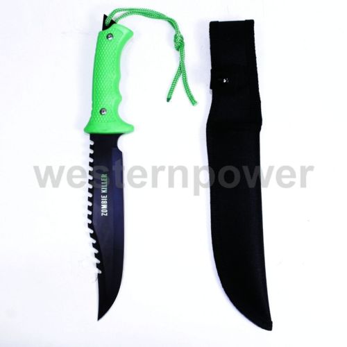 13″ Overall Zombie Black Steel Blade Neon Green Handle Steel Knife with Sheath