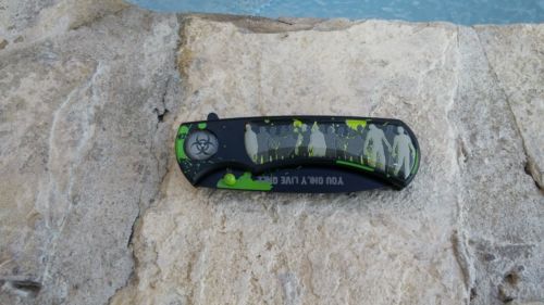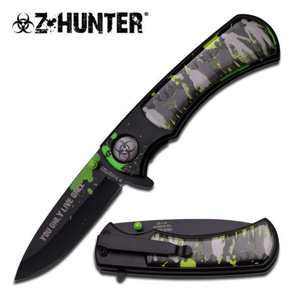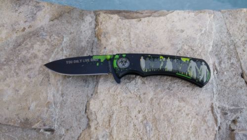 - BLACK BLADE WITH GREEN SPLASH AND THUMB STUD